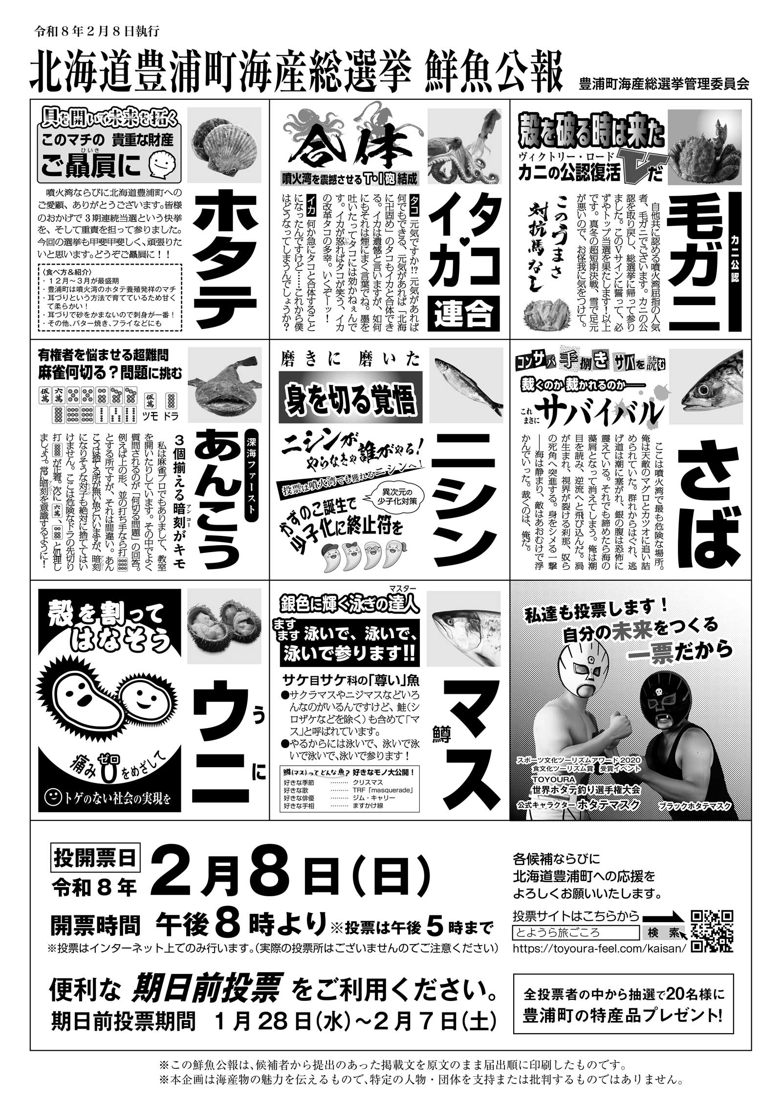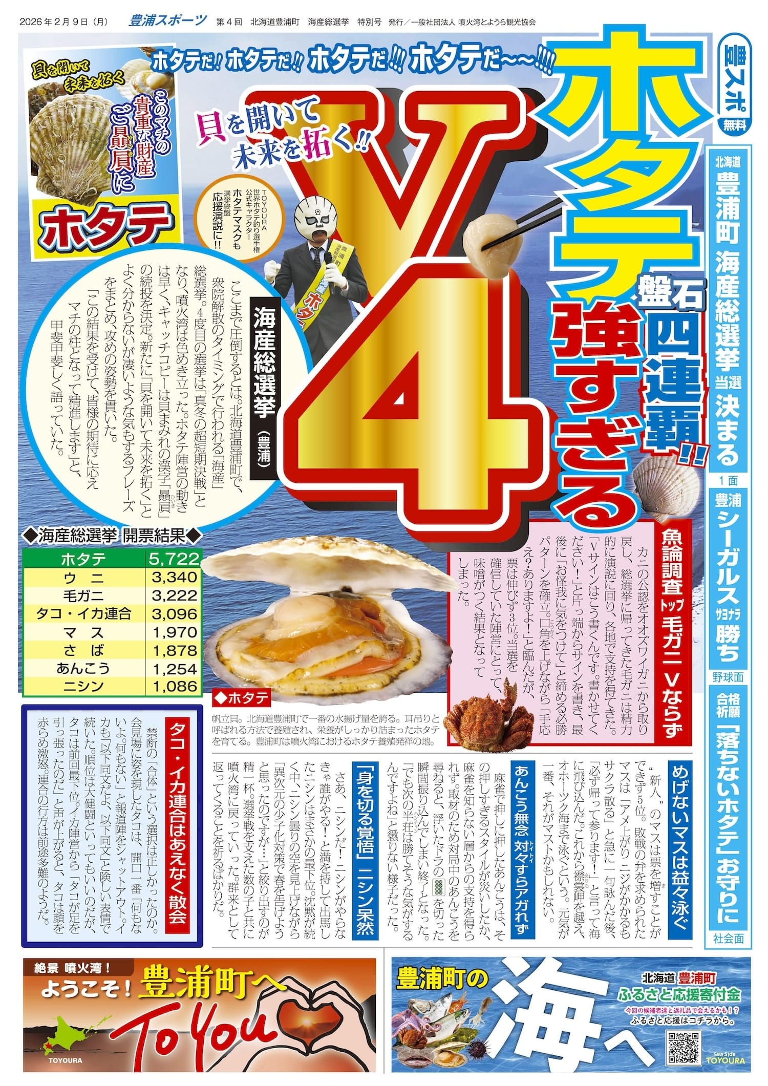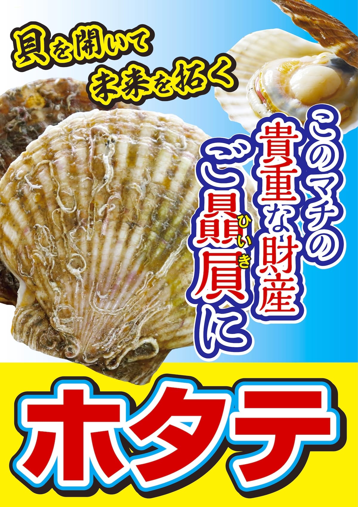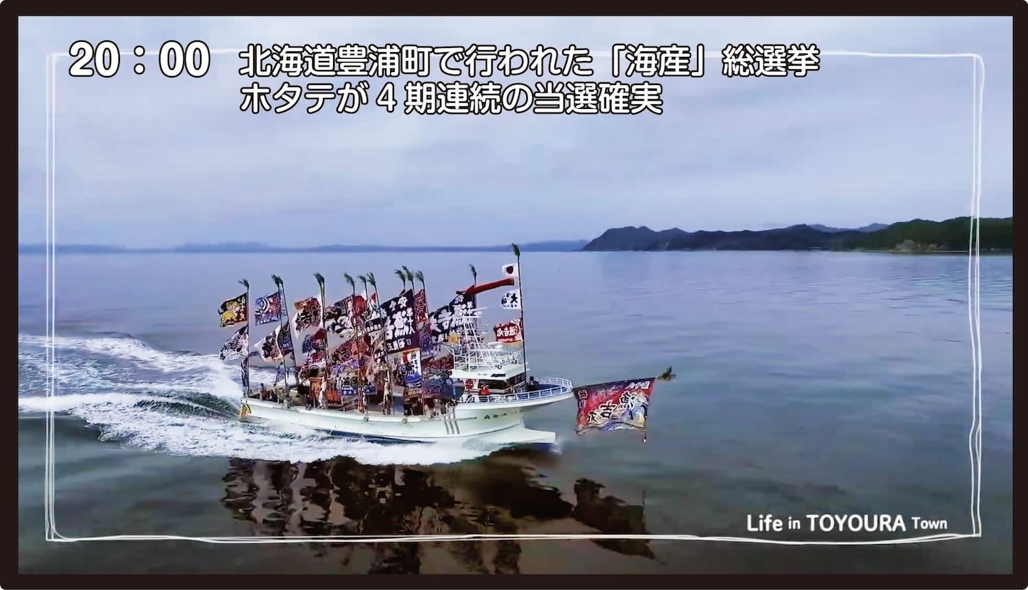 このホタテに限らず、豊浦町内で水揚げされる代表的な海の幸を「立候補者」として見立て、