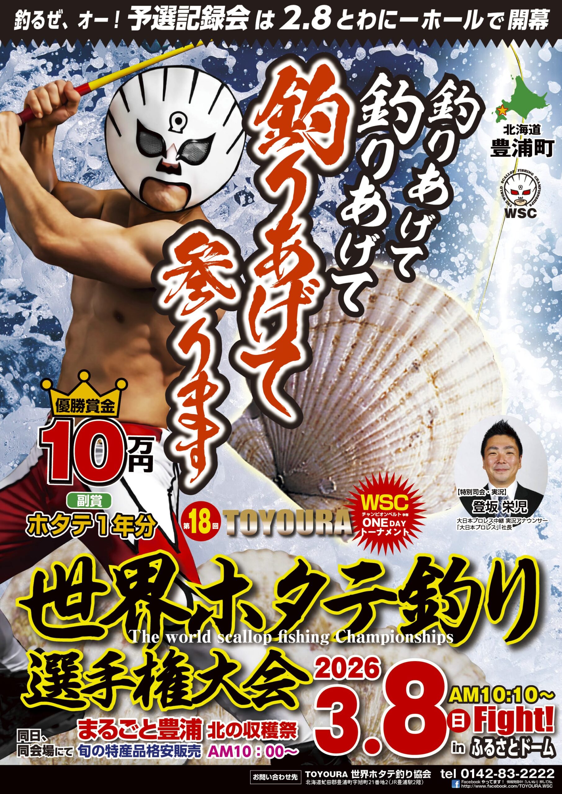 このホタテを活用し、公式ルールのもと競技化した「TOYOURA世界ホタテ釣り選手権大会」の第18回大会を令和8年3月8日(日)に開催致しますが、大会出場権を争う予選記録会を実施致します。
